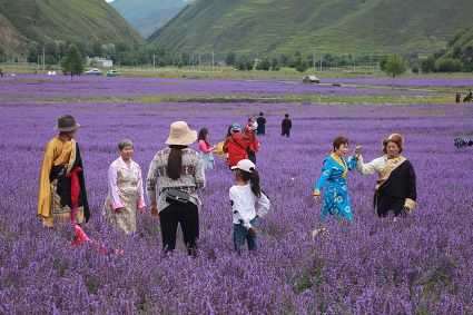 自6月中旬開始,康定市新都橋鎮(zhèn)東俄洛二村的570多畝薰衣草花盛開,引得各地游客前來(lái)觀光旅游。各大微信公眾號(hào)、抖音短視頻平臺(tái)、微博大V紛紛發(fā)布“攝影天堂薰衣草花海絢麗綻放”的視頻、圖文信息,該景點(diǎn)儼然成為甘孜州新晉的網(wǎng)紅景區(qū)。