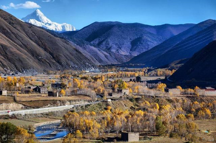 新都橋又稱東俄羅,位于318國道川藏南北線的分叉路口,號稱“攝影家的天堂“。在這可以拍攝到無垠的草甸,曲折的溪流,金黃的秋葉,山坡上大片在覓食的牛羊,散落著的藏族村寨。隨便一按快門都能得出一張絕美的風景照。