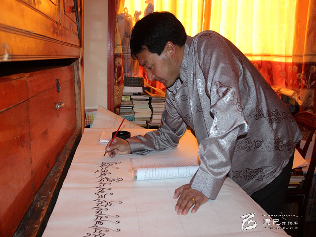 “指導(dǎo)過(guò)我的書法家非常多,他們不僅給了我許多寶貴的意見(jiàn),更重要的是給了我信心和動(dòng)力,讓我堅(jiān)持寫書法,并成為康體藏文書法的傳承人。”巴松鄧珠說(shuō),康體書法是康區(qū)盛行的一種藏文字體,主要有正楷和草體,特點(diǎn)是柔軟細(xì)膩、圓滑剛勁有力。