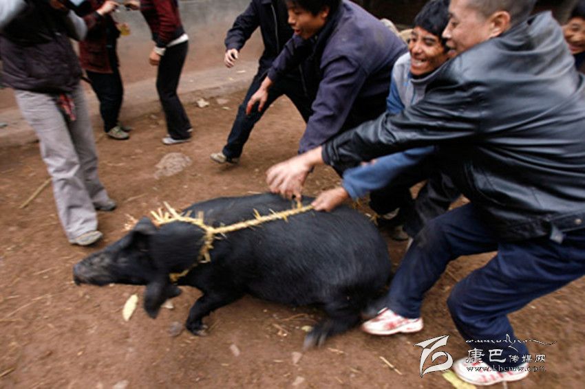 割豬蹄給娃娃們拿到山上玩。大人陪他們?nèi)计痼艋穑笓]他們將豬蹄不分你我地拋進(jìn)火中燒熟后,你一塊,我一坨地掏來(lái)吃,以養(yǎng)成團(tuán)結(jié)友愛的道德風(fēng)尚。