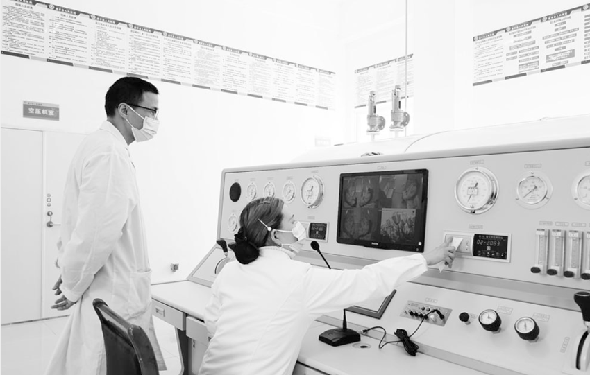 占地180余平方米的高壓氧治療中心,可容納6名患者同時(shí)治療。高壓艙內(nèi),患者可以自在地坐著“吸氧”,還可以聽聽音樂(lè)、聊聊天。艙內(nèi)配備空調(diào)、監(jiān)控及對(duì)講裝置,醫(yī)護(hù)人員在安全操控設(shè)備的同時(shí)全程密切關(guān)注艙內(nèi)情況,以防意外情況的發(fā)生。