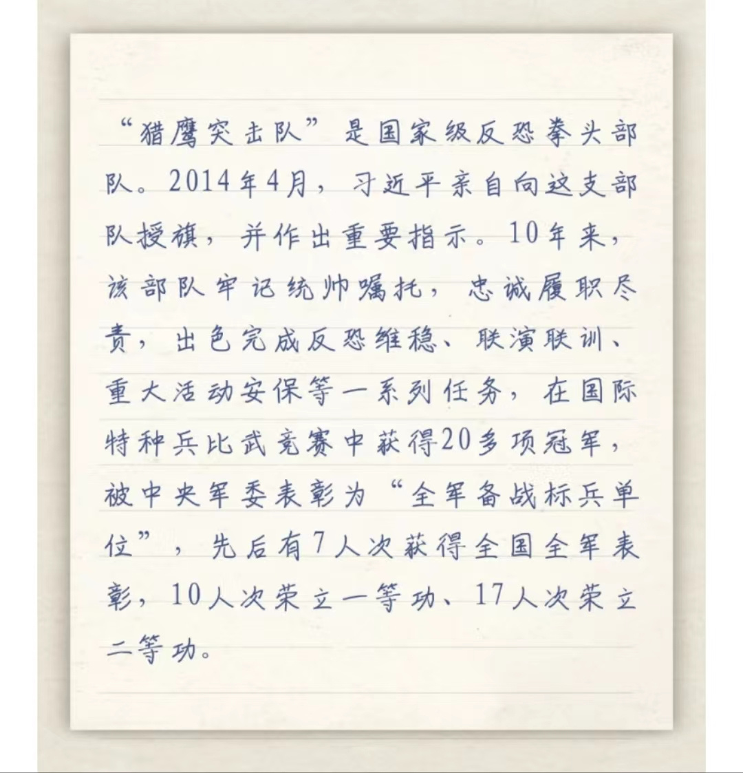 習(xí)主席給“強(qiáng)軍精武紅四連”全體官兵回信