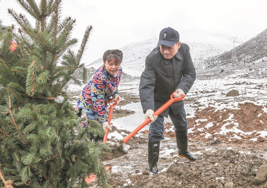 在海拔3800米的呷巴鄉(xiāng)植樹點(diǎn),劉成鳴、向秋、包建華與其他州領(lǐng)導(dǎo)一道拿起鐵鍬與機(jī)關(guān)干部、部隊(duì)官兵和學(xué)生們一起植樹。挖坑、扶苗、填土、澆水……大家合力栽下楊柳、高山柳等一棵棵適合當(dāng)?shù)厣L的樹苗。植樹過程中,劉成鳴還不時(shí)詢問本次義務(wù)植樹活動的栽種面積、樹木品種及成活率等情況。在與同學(xué)們一起植樹時(shí),劉成鳴勉勵(lì)同學(xué)們從小樹立保護(hù)環(huán)境、愛綠護(hù)綠意識,多做有意義的事,用勤勞的雙手建設(shè)美好家園,要像今天種下的一棵棵樹苗一樣,健康茁壯成長。