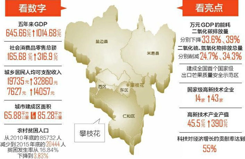 2013年,攀西戰(zhàn)略資源創(chuàng)新開發(fā)試驗區(qū)設(shè)立,兩地大面積進入試驗區(qū);根據(jù)我省去年編制出臺的五大經(jīng)濟區(qū)“十三五”發(fā)展規(guī)劃,攀西經(jīng)濟區(qū)包括攀枝花市和涼山州2市(州)、22個縣(區(qū)),涉及經(jīng)濟總量2240億元。