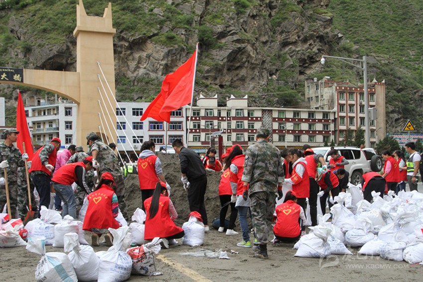 這樣無私付出、無畏向前的行為時時上演在丹巴抗洪搶險的每一處戰(zhàn)場上。他們有的站在洪流中指揮救災,額頭冒出大顆的汗珠;有的肩抗沙袋大步向前,腳下濺起的水花打濕了臉龐;有的連夜冒雨疏散群眾、指揮交通,來不及休息繼續(xù)堅守一線?!?/span>6·15”險情發(fā)生后,丹巴縣150名政法干警、武警官兵和縣級機關(guān)300多名45歲以下男性黨員、干部奔赴抗洪救災一線,累計裝填沙袋15000袋、綁捆鐵絲1噸、鐵絲網(wǎng)500個,發(fā)放救生衣500余件。