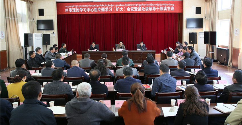 州委理論學習中心組成員,不是州委理論中心組成員的州人大常委會副主任、州政協(xié)副主席,不是州委理論學習中心組成員的州委、州人大常委會、州政府、州政協(xié)副秘書長,州委各部委、州級各部門黨組(黨委、黨工委)和省屬行政企事業(yè)單位黨委(黨組)、州屬企事業(yè)單位黨委(黨組)主要負責人,部分縣委書記參加學習。