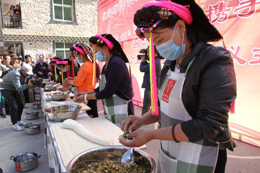 啟動儀式上,五家群團部門負責人分別上臺接收“喜波勒雄”公益助貧行動任務(wù)包。隨即,開展的“喜波勒雄”新時代講堂、包酸菜包子、民俗接待基礎(chǔ)技能比拼、栓頭帕比賽、繡藏繡比賽等“五洗一掃”評選分項活動人氣爆棚,過往游客紛紛駐足,盛贊當?shù)孛袼罪L情獨具特色。