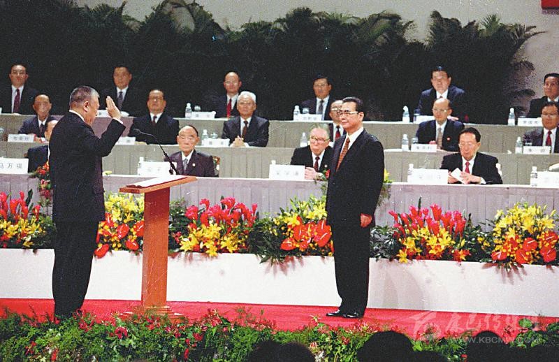 1997年7月1日凌晨,中華人民共和國香港特別行政區(qū)成立暨特區(qū)政府宣誓就職儀式在香港會(huì)議展覽中心新翼七樓隆重舉行。香港特區(qū)首任行政長(zhǎng)官董建華宣誓就職,李鵬同志監(jiān)誓。 新華社記者 劉建國 攝