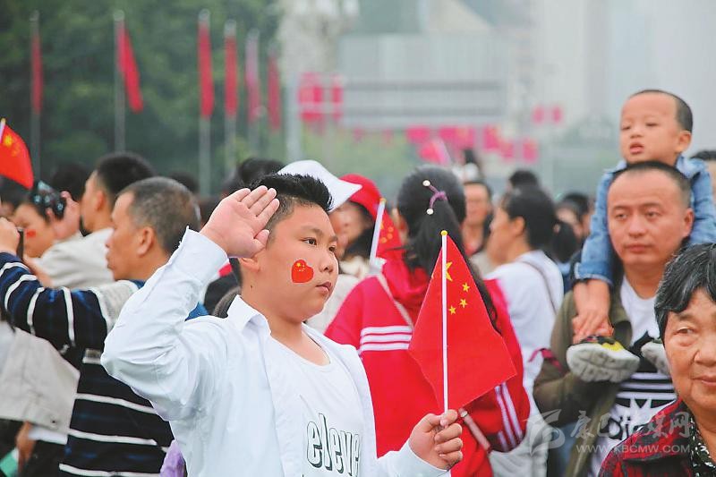 在廣元,雖然天空飄著小雨,但上百名黨員干部和市民自發(fā)聚集在市政府廣場。雄壯的國歌聲中,目送五星紅旗冉冉升起后,現(xiàn)場爆發(fā)出熱烈的歡呼聲。升旗儀式結束后,廣元市委組織部年輕干部趙志浩請同事為自己和父親拍了3張合影。作為當?shù)匾M的人才,他第一次在廣元參加國慶升旗活動,“見證共和國70華誕,也激勵我為廣元發(fā)展貢獻力量?!?/p>