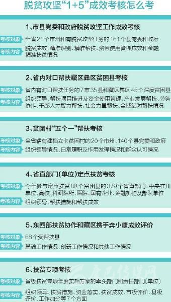 如何考?省扶貧開發(fā)局相關(guān)負責人介紹,具體而言,就是將黨委和政府脫貧攻堅工作成效考核、省直部門(單位)定點扶貧考核、扶貧專項考核、省內(nèi)對口幫扶藏區(qū)彝區(qū)貧困縣考核、貧困村“五個一”幫扶考核、東西部扶貧協(xié)作和藏區(qū)攜手奔小康成效評價統(tǒng)一整合為脫貧攻堅成效考核,一支隊伍完成所有考核。