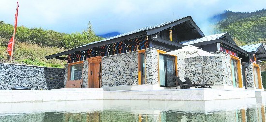 浮在水面的新藏寨竣工的第一棟民宿