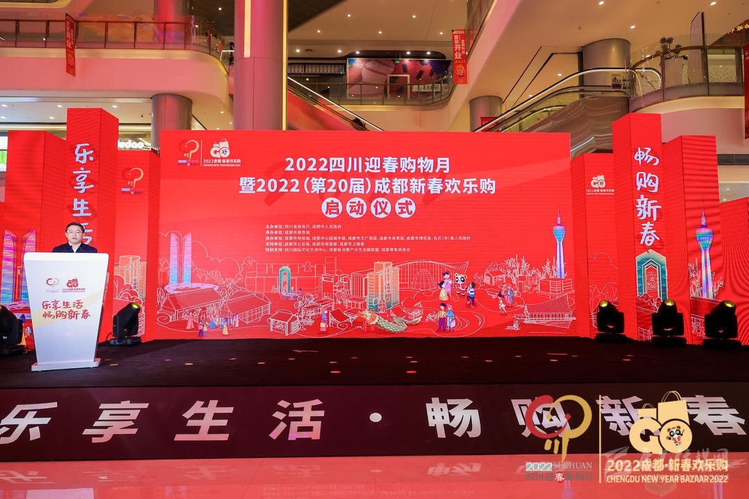 12月30日,由四川省商務廳、成都市人民政府主辦,成都市商務局承辦的“2022四川迎春購物月暨成都新春歡樂購”啟動儀式在蓉啟動?;顒蝇F(xiàn)場,成都新春歡樂購活動以沉浸式互動劇的形式繽紛呈現(xiàn),成渝雙城聯(lián)袂開展促銷活動,為元旦、春節(jié)“買買買”備足消費大餐。