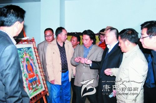 本網(wǎng)訊(高志安 鄭勇 文/圖) 6月21日,國家文化部非遺司司長馬文輝在省文化廳副廳長澤波陪同下,到四川省藏文學(xué)校調(diào)研藏族唐卡畫繪藝術(shù)嘎瑪嘎孜畫派教學(xué)情況。嘎瑪嘎孜畫派國家級(jí)傳承人、省藏校高級(jí)講師顔登澤仁就嘎瑪嘎孜畫派的歷史、傳承情況以及現(xiàn)狀向馬文輝一行作了匯報(bào)。省藏校負(fù)責(zé)人匯報(bào)了學(xué)校唐卡藝術(shù)教學(xué)情況。馬文輝一行一邊聽取匯報(bào),一邊觀看師生作品和學(xué)生現(xiàn)場(chǎng)作畫,并向師生了解情況,聽完匯報(bào)、看完學(xué)生繪畫后,馬文輝對(duì)省藏校的唐卡藝術(shù)教育工作給予了高度評(píng)價(jià),并要求學(xué)校繼續(xù)做好弘揚(yáng)民族優(yōu)秀傳統(tǒng)文化工作,為社會(huì)主義文化大發(fā)展作出新貢獻(xiàn)。