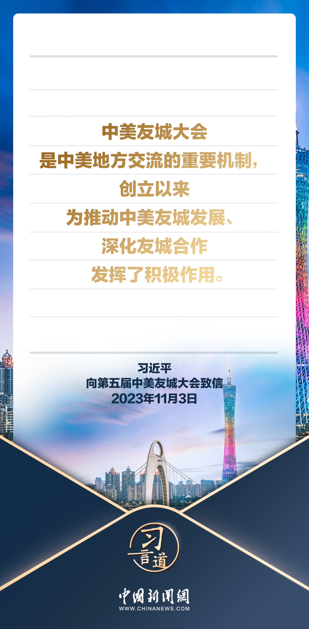 11月3日,國家主席習(xí)近平向第五屆中美友城大會(huì)致信。習(xí)近平指出——