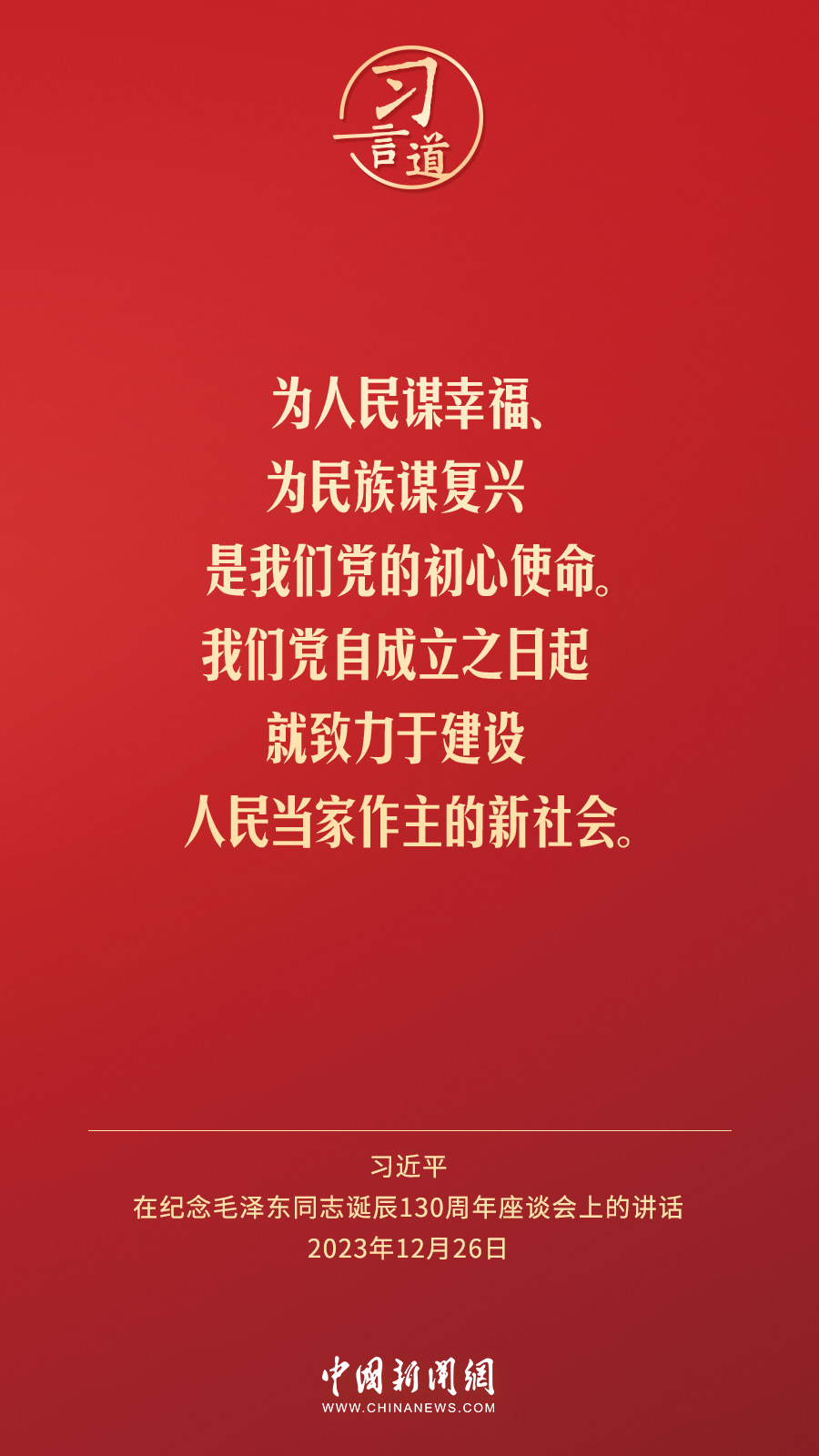 中共中央26日上午在人民大會堂舉行座談會,紀念毛澤東同志誕辰130周年。中共中央總書記、國家主席、中央軍委主席習近平發(fā)表重要講話。習近平指出——