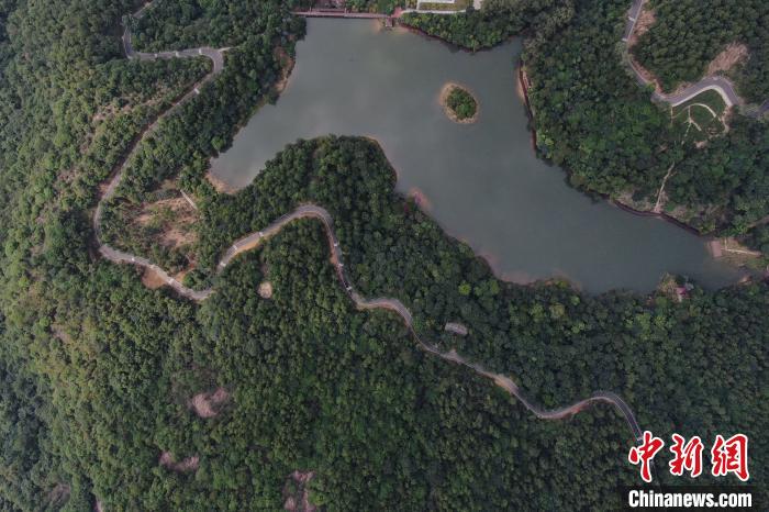航拍鏡頭下的廣州市白江湖森林公園。 陳楚紅 攝