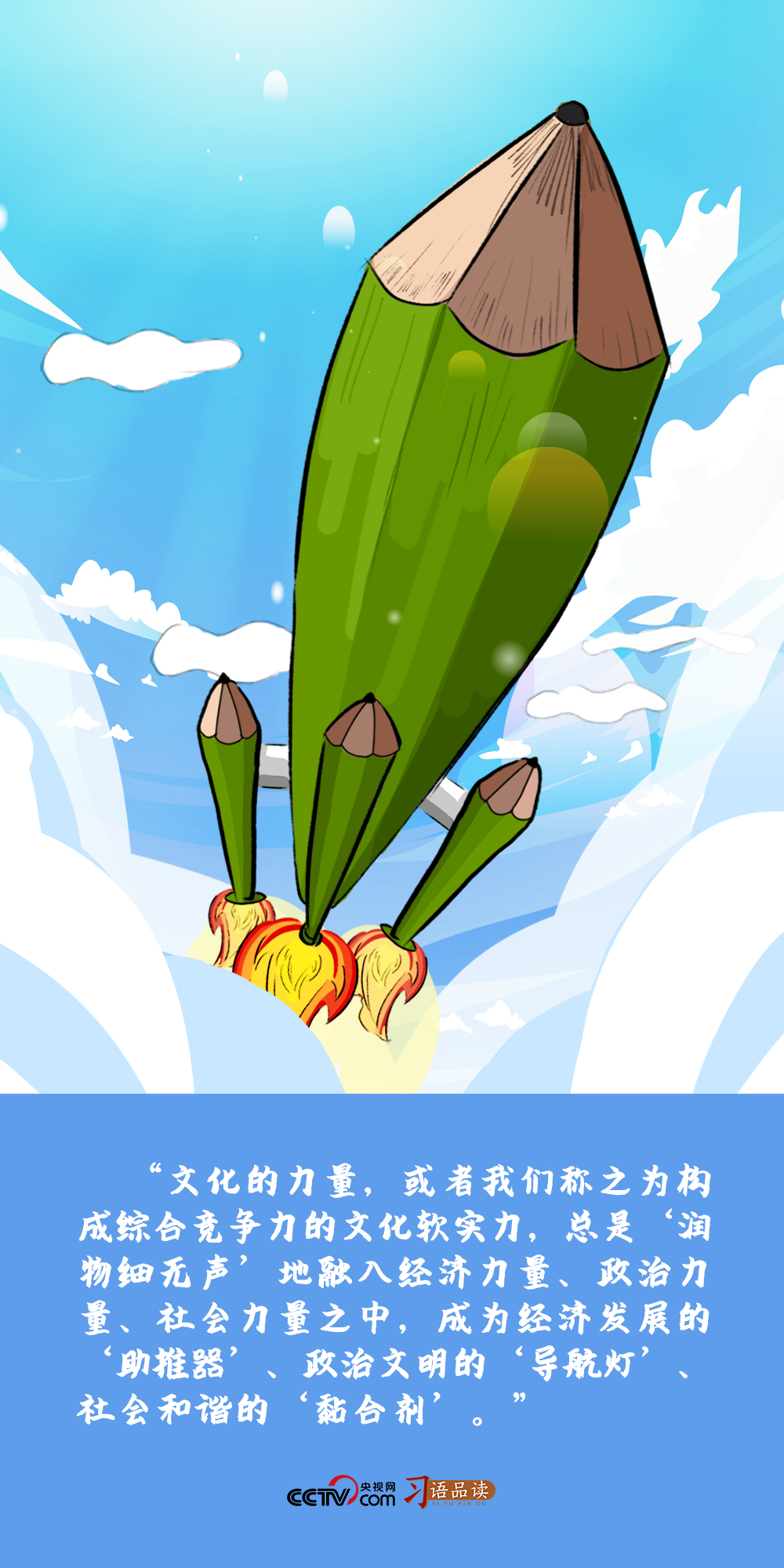 2005年8月12日,時(shí)任浙江省委書記的習(xí)近平在《浙江日?qǐng)?bào)》“之江新語(yǔ)”專欄中寫道:“文化的力量,或者我們稱之為構(gòu)成綜合競(jìng)爭(zhēng)力的文化軟實(shí)力,總是‘潤(rùn)物細(xì)無(wú)聲’地融入經(jīng)濟(jì)力量、政治力量、社會(huì)力量之中,成為經(jīng)濟(jì)發(fā)展的‘助推器’、政治文明的‘導(dǎo)航燈’、社會(huì)和諧的‘黏合劑’。”