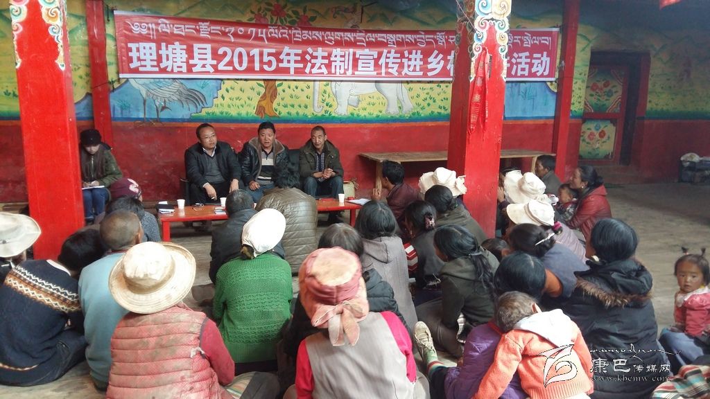 為營(yíng)造“人人學(xué)法、全民守法”的濃厚氛圍,理塘縣依托群眾工作全覆蓋及精準(zhǔn)扶貧工作,通過(guò)廣播電視播放公告、城市廣場(chǎng)懸掛標(biāo)語(yǔ)、出租車(chē)頂播放宣傳標(biāo)語(yǔ)等方式加大宣傳力度。并于2015年11月從全縣機(jī)關(guān)單位抽調(diào)57名懂雙語(yǔ)、責(zé)任心強(qiáng)、具有一定法學(xué)素養(yǎng)的人員組成6個(gè)宣講組,分別在全縣214個(gè)行政村及對(duì)縣城各鄉(xiāng)搬遷戶(hù)進(jìn)行集中宣傳。