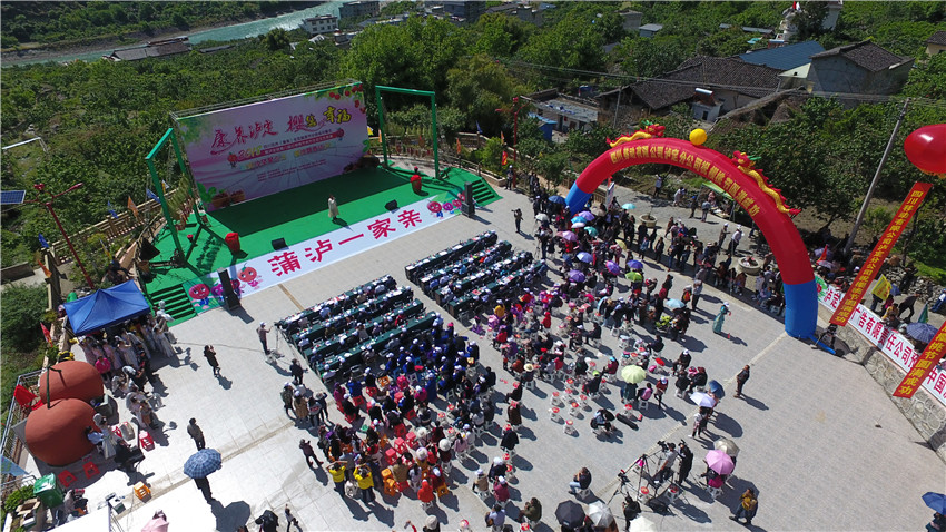 此前的4月27日,濛濛細(xì)雨中,一場(chǎng)“既高規(guī)格又接地氣”的主題晚會(huì)更是點(diǎn)亮紅城,耳熟能詳?shù)挠茡P(yáng)樂(lè)曲、龍騰飛揚(yáng)的歌伴舞、深情款款的詩(shī)朗誦,《往事瀘定》《紅色瀘定》《幸福瀘定》三個(gè)篇章引得臺(tái)下喝彩連連,掌聲雷動(dòng),瀘定橋廣場(chǎng)更是被“層層包圍”。在活動(dòng)現(xiàn)場(chǎng),蒲瀘兩地旅游餐飲行業(yè)協(xié)會(huì)聯(lián)合打造的文創(chuàng)旅游產(chǎn)品——櫻桃小酒正式亮相啟售。