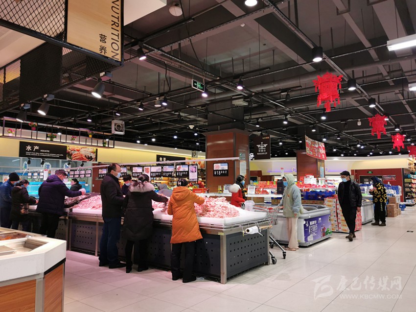 在二樓的豬肉供應(yīng)攤點,康定冷鏈凍制品有限責(zé)任公司積極響應(yīng)政府的號召,為了讓市民能夠買到放心的新鮮豬肉,1月30日,該公司門店冷鏈生鮮肉業(yè)共計屠宰了4頭生豬,該公司職員告訴記者,疫情期間,豬源供應(yīng)緊張,并且要經(jīng)過層層檢疫才能進入市場,但是公司仍然積極尋找豬源,保證疫情期間的豬肉供應(yīng),所以即便是到了下午仍能買到新鮮豬肉。