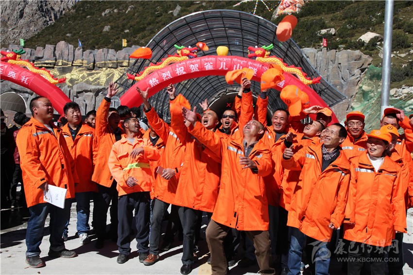雀兒山隧道通車后,欣喜的五道班工人。
