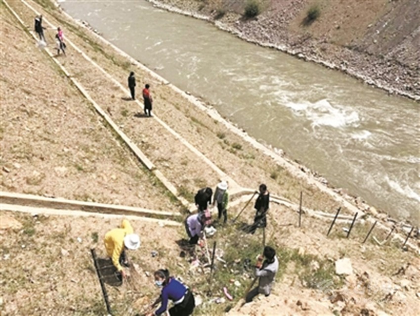 爐霍縣洛秋鄉(xiāng)村民對(duì)轄區(qū)河道進(jìn)行治理。