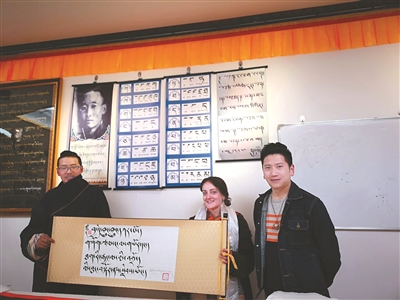 本網(wǎng)訊 前段時間,一篇微信文章《天空之城新玩法,老外學寫藏書法》刷爆了甘孜的微信朋友圈,法國女孩理塘學藏文書法的消息傳遍大街小巷。如今,這個叫寶林的女孩已經(jīng)回到法國,她給教授她藏文書法的益西老師打來電話,感謝對她的教授。