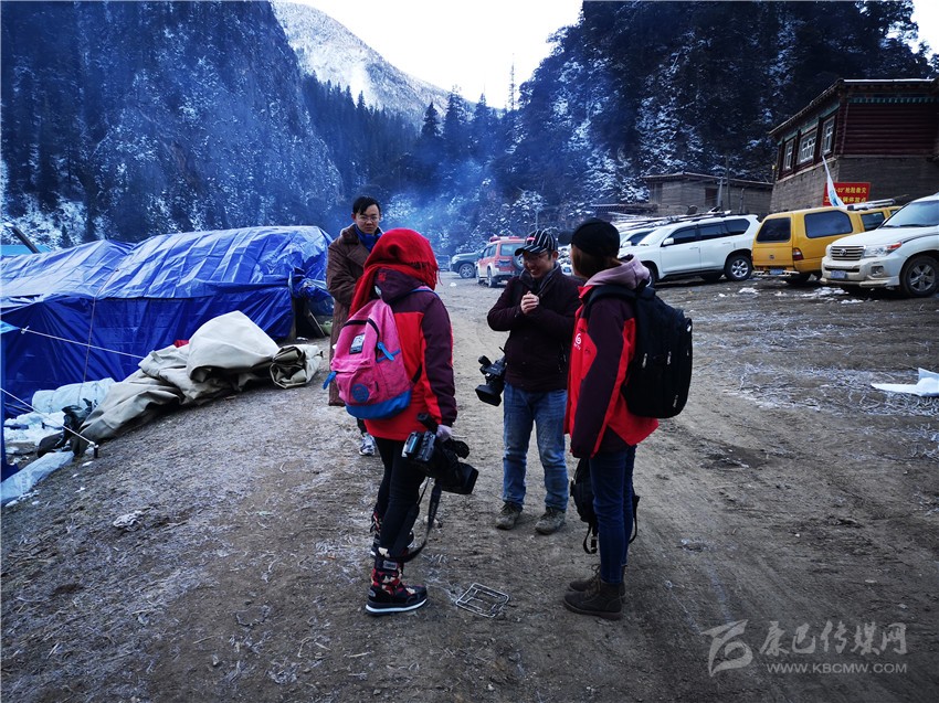 11月6日晚,甘孜日?qǐng)?bào)記者馬建華、張磊、余秋林和州廣播電視臺(tái)副臺(tái)長(zhǎng)何良忠、記者洛嘎、肯布及白玉電視臺(tái)記者連夜趕赴則巴村中轉(zhuǎn)站。26公里的崎嶇山路,冰雪道危險(xiǎn)重重,坡陡彎急,司機(jī)憑借經(jīng)驗(yàn)在坡度60度以上的暗冰道上行駛,經(jīng)過(guò)兩個(gè)多小時(shí)的艱難行進(jìn),采訪(fǎng)組終于入住前方救災(zāi)組搭建的救災(zāi)帳篷。深夜,大雪紛揚(yáng),帳篷里寒氣襲人。帳篷四周,狗叫聲不止,一條狗鉆進(jìn)帳篷,蜷縮在記者床鋪旁邊,因?yàn)樘洌浾邆儾蝗绦膶⑺?qū)離。11月7日,白格堰塞湖庫(kù)容量達(dá)到2.71億立方米,白格堰塞湖形勢(shì)嚴(yán)峻,嚴(yán)重威脅我州金沙江下游群眾生命財(cái)產(chǎn)安全。一大早,10多公分厚的大雪扮美了村莊,卻給機(jī)具、救災(zāi)物資、救援人員進(jìn)出等帶來(lái)極大困擾?!拔覀兊耐诰驒C(jī)司機(jī)在山上被大雪困了一夜,徒步到中轉(zhuǎn)站休息了三個(gè)小時(shí)又到山上去作業(yè)了,你們應(yīng)該去采訪(fǎng)一下?!敝菡敝蓍L(zhǎng)何康林說(shuō)。