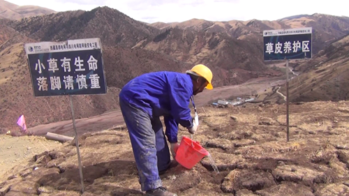 據(jù)介紹,施工前工作人員先將施工區(qū)域的原生草皮進(jìn)行剝離,移至他處并進(jìn)行養(yǎng)護(hù),待施工結(jié)束后,再將剝離的草皮移回原處進(jìn)行回鋪;對(duì)開(kāi)挖造成地表植被破壞的地段播撒適合高原生長(zhǎng)的草籽,直到長(zhǎng)出綠草。現(xiàn)場(chǎng)的施工人員介紹說(shuō),塔基開(kāi)挖過(guò)程中,先將熟土(表土)、生土分開(kāi)堆放,并采取隔離(鋪設(shè)棕墊等)、攔擋、覆蓋等措施,回填時(shí)先將生土回填,熟土最后置于表面,以保證植被的恢復(fù)。