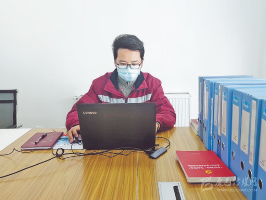 周明輝在查看疫情防控相關(guān)資料。