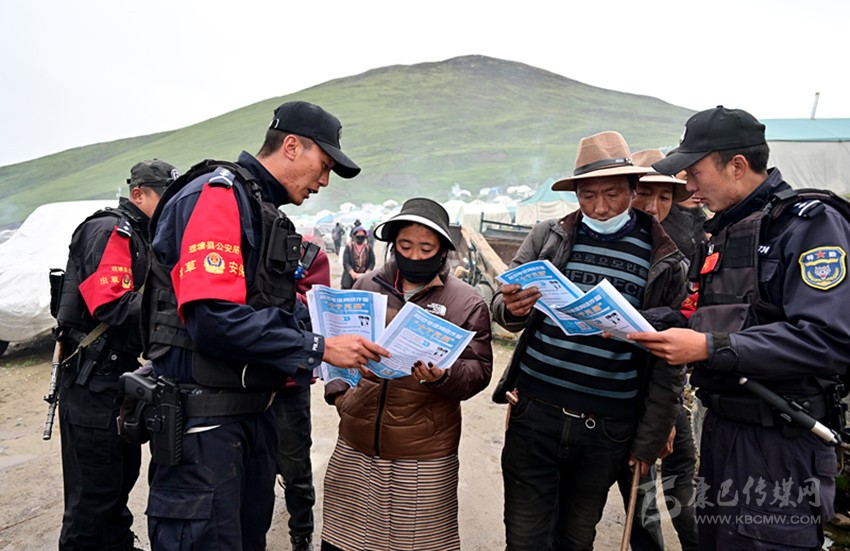 回到集中居住點(diǎn),登孜羅布和同事又來到蟲草交易市場(chǎng),向群眾和商販宣傳反電信詐騙的知識(shí),提醒大家守好錢袋子,不要讓挖蟲草辛辛苦苦掙來的錢被騙走了。民警們還對(duì)小賣部進(jìn)行檢查,查看有沒有銷售過期或假冒偽劣的生產(chǎn)生活用品以及管制刀具等違禁品。傍晚時(shí)分,居住點(diǎn)里炊煙裊裊,勞碌了一天的群眾開始生火做飯,民警們又要開展巡邏,提醒大家注意用火安全。夜幕降臨,當(dāng)大家進(jìn)入夢(mèng)鄉(xiāng)的時(shí)候,登孜羅布和他的同事仍然值守在崗位上,守護(hù)居住點(diǎn)夜晚的安寧。