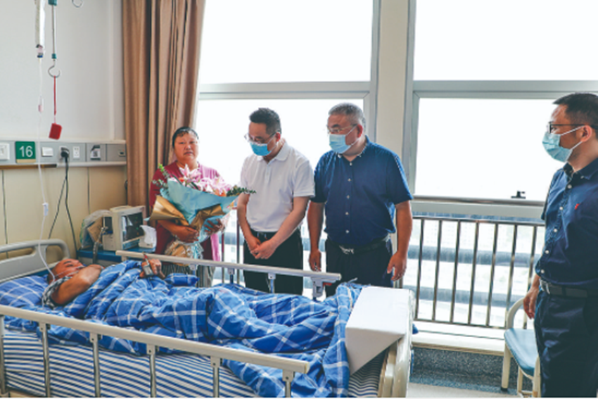 浙江對(duì)口支援甘孜工作隊(duì)康定市工作分隊(duì)隊(duì)長(zhǎng)王靖江看望脊柱手術(shù)患者。